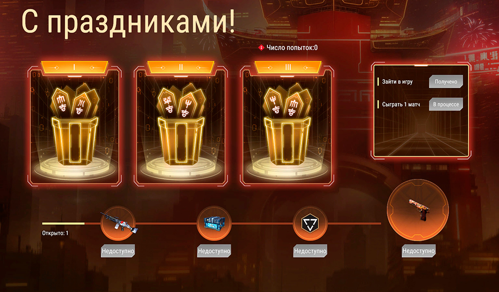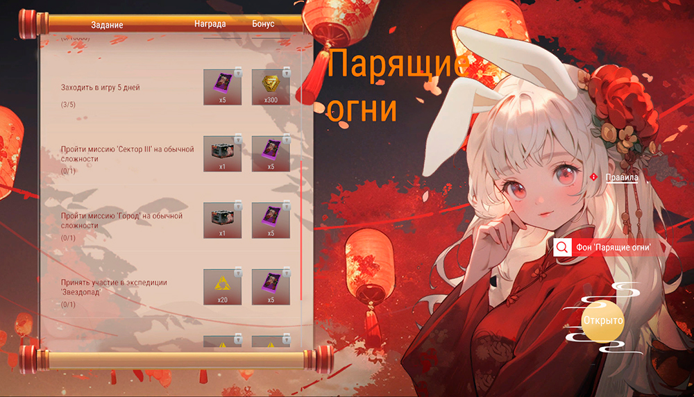 Выполняя задания во время события, ты сможешь открывать конверты с праздничными поздравлениями. При открытии конверта каждого типа существует повышенный шанс получений одной из наград. Для первого конверта это карта сохранения звезд, для второго — карта "Материалы" "Кристаллин", "Кристалл", "Осколки" и "Образцы", для третьего — карта сезонного опыта. После открытия определенного количества конвертов можно получить награды, указанные на горизонтальной шкале.