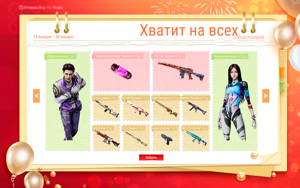 Заходи в игру в указанные даты и забирай персонажей и множество пушек на 7 дней. Отличная возможность, чтобы испытать в деле интересное оружие!