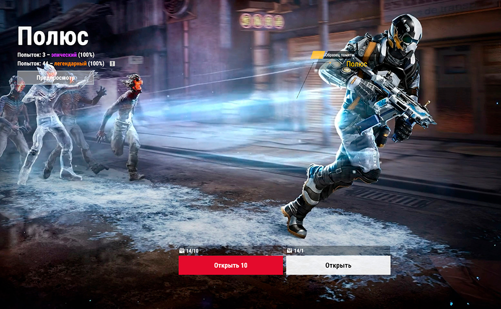 В разделе "Арсенал" доступен ящик с оружием серии "Баланс". За 10 попыток ты гарантированно заберешь из ящика эпическое оружие, а за 50 — легендарное.