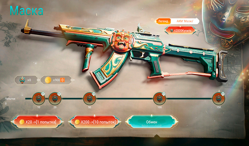 Маски можно обменивать на различные награды. Главный приз — легендарный автомат АКМ "Маска".