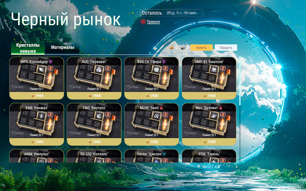 Здесь можно продавать и покупать кристаллы навыка и образцы памяти, а также материалы для их улучшения. Валютой здесь являются золотые и серебряные жетоны. Обрати внимание, что продать используемые или заблокированные предметы снаряжения не получится.