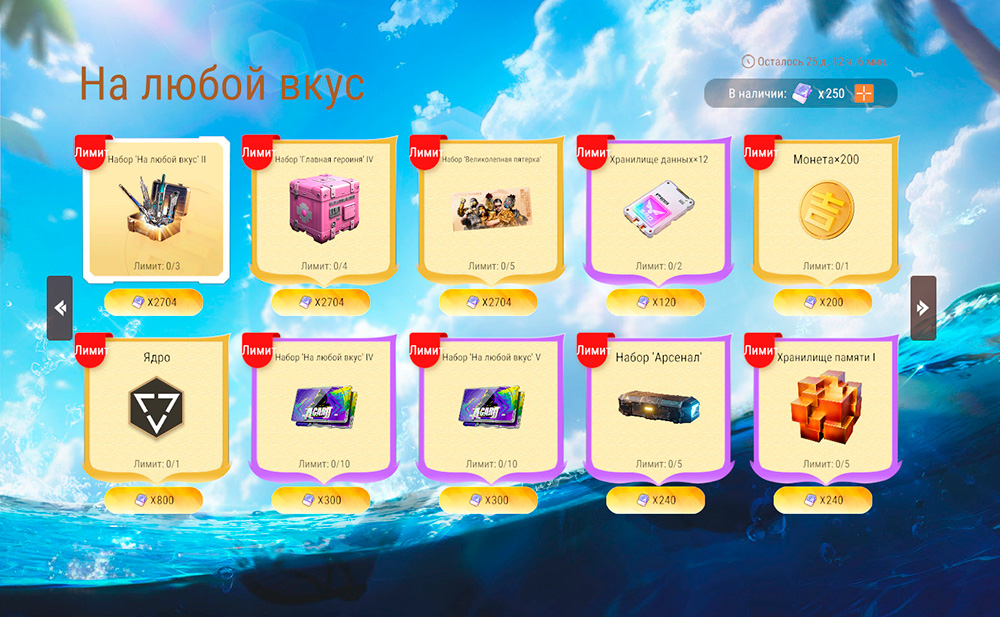 - особые монеты для участия в событиях (в количестве 100, 150 и 200);